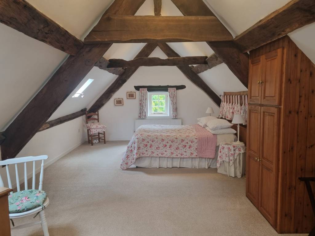 This historic cottage nestles in a wooded valley on the side of the River Severn. It has a roomy beautiful oak-beamed bedroom with a king size bed and a downstairs room with two singles to accommodate four people and two dogs. In the living room there is a Smart TV and Wi-Fi and a well-stocked up to date kitchen. Guests have access to a patio, pagoda, double swing chair on a secluded lawn near a stream and a “secret garden”.