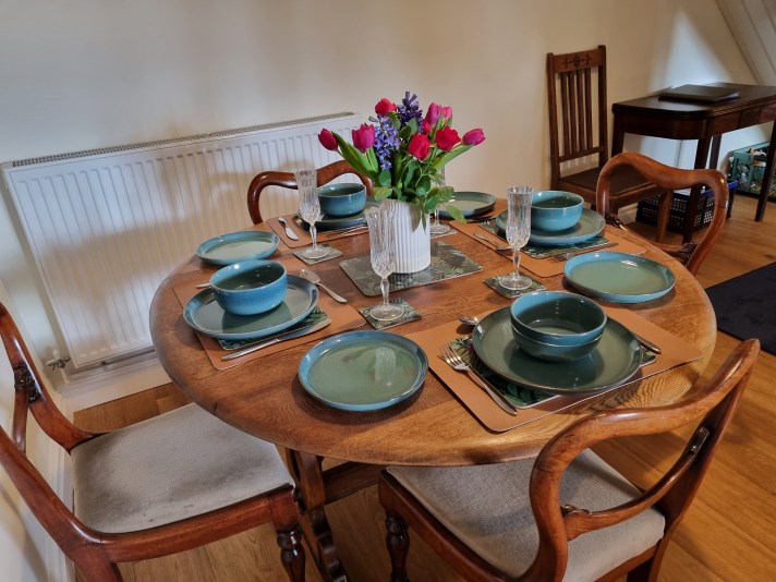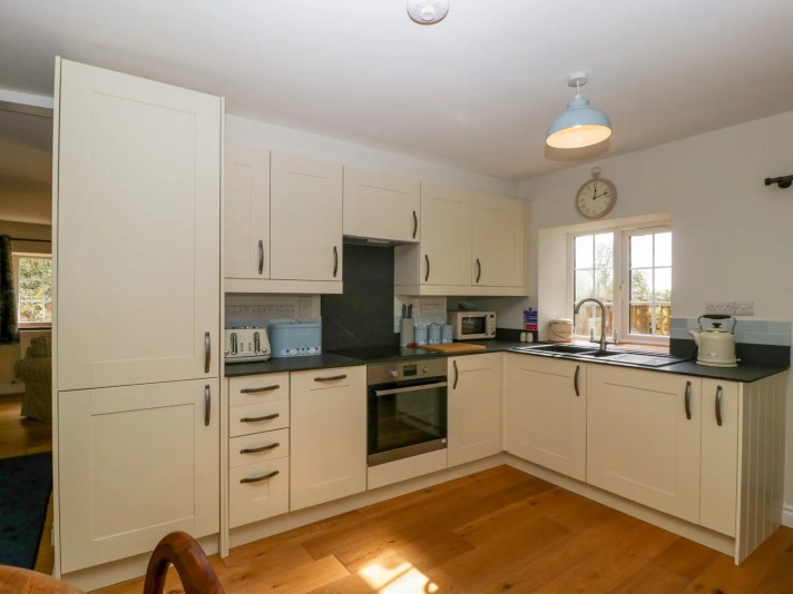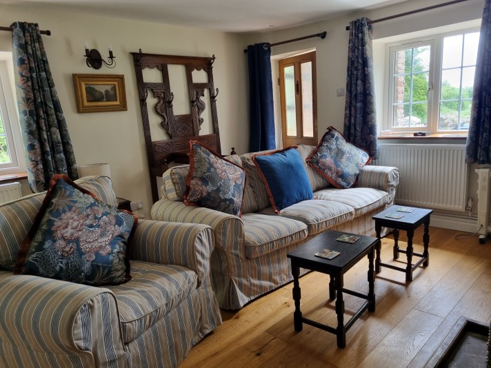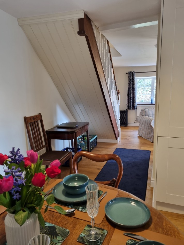 This luxurious cosy sixteenth-century cottage with views of the River Severn has a pretty garden with a patio and deck and outdoor furniture. It is adjacent to an ancient woodland and is surrounded by country walks. There is room for up to four guests and two dogs. The green bedroom has a super king bed and the blue bedroom has twin beds which can be converted to a super king on request. There is central heating and a log-burning stove in the living room which has a Smart TV and Wi-Fi. The kitchen contains an oven, induction hob, dishwasher, large fridge freezer, washing machine and microwave. The cottage can be booked along with Anvil Cottage next door to accommodate up to eight guests and four dogs. See the slide show above.