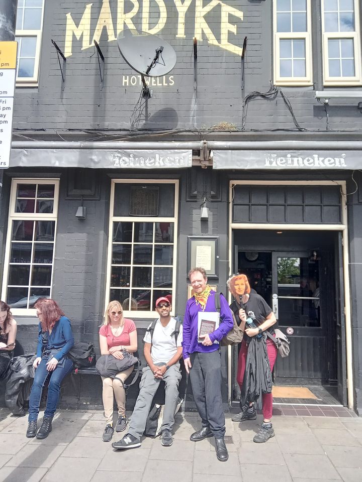 Outside the Lansdown Pub in Bristol where Angela and Paul Carter ran a folk club, with fellow Angela Carter Society Executive Committee – Steve Hunt and Caleb Sivyer.