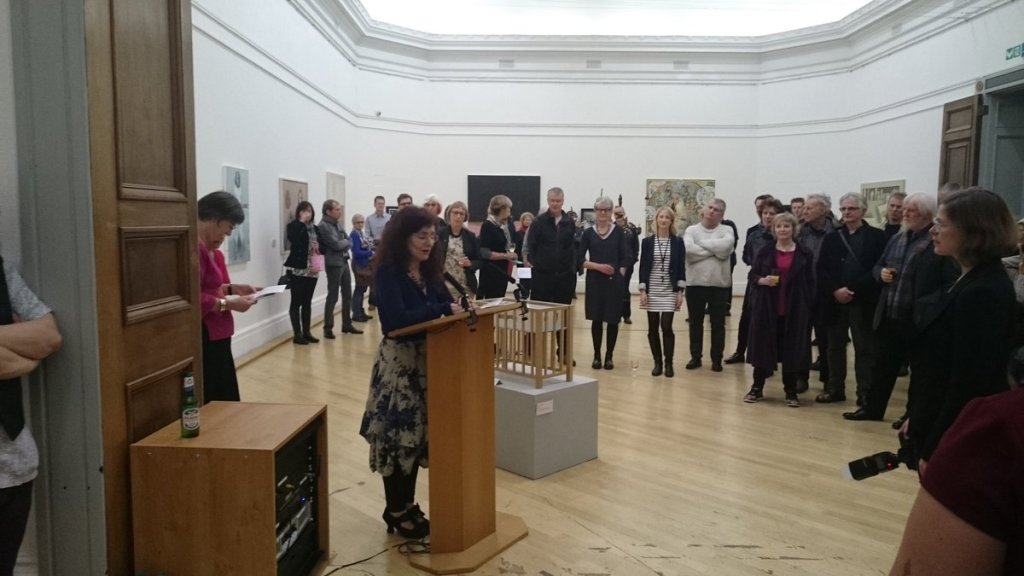 A reading at the Shock and Awe Exhibition at the RWA, Bristol in front of Tim Shaw’s Casting a Dark Democracy