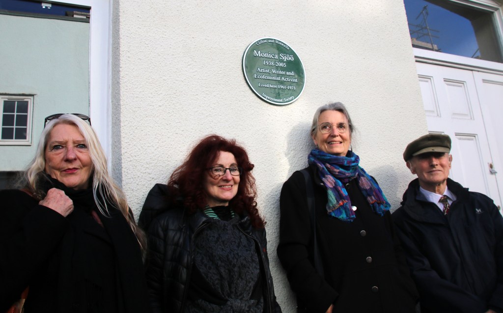 Celebrating the dedication of a green plaque to Monica Sjoo in Bristol